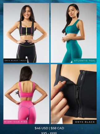 Zippered Dive Bra - Atlantis Teal w/ H2O Stitching, Miami Pink Vice w/ H20 Blue stitching, Onyx Black w/ Tiki Yellow/Miami Vice Pink Stitching, Onyx Black w/ Onyx Stitching ($46) - Energy Fabric